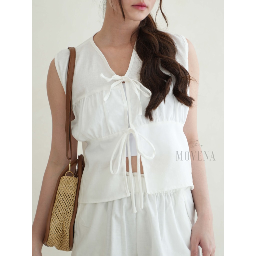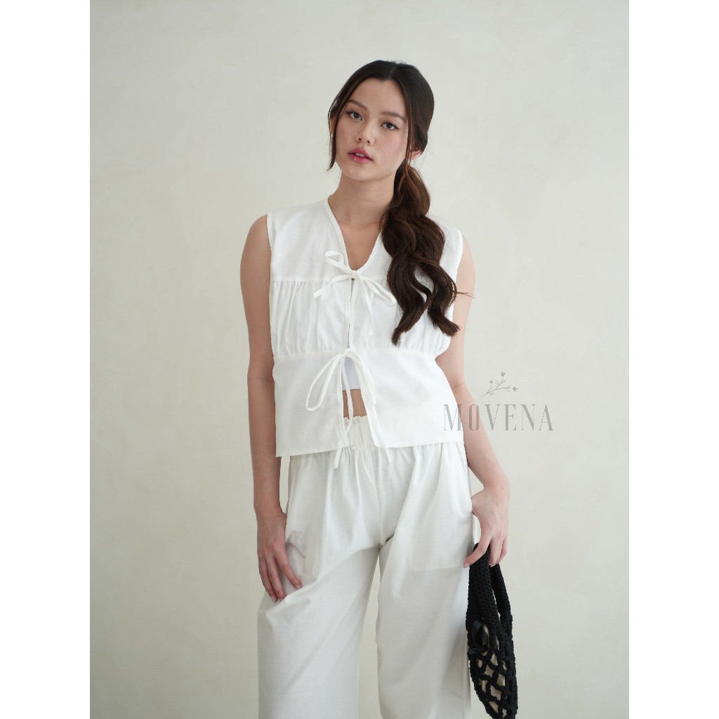 Andrea Linen Set Trousers | Set Kulot Wanita | Setelan Wanita Pantai | Setelan Vest Tali Rompi dan Highwaist Pants Culot