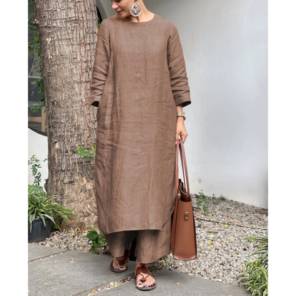 sally_fashion Tunika One Set Baju Setelan Wanita Model Kekinian Bahan Linen Rami OOTD Wanita Terbaru