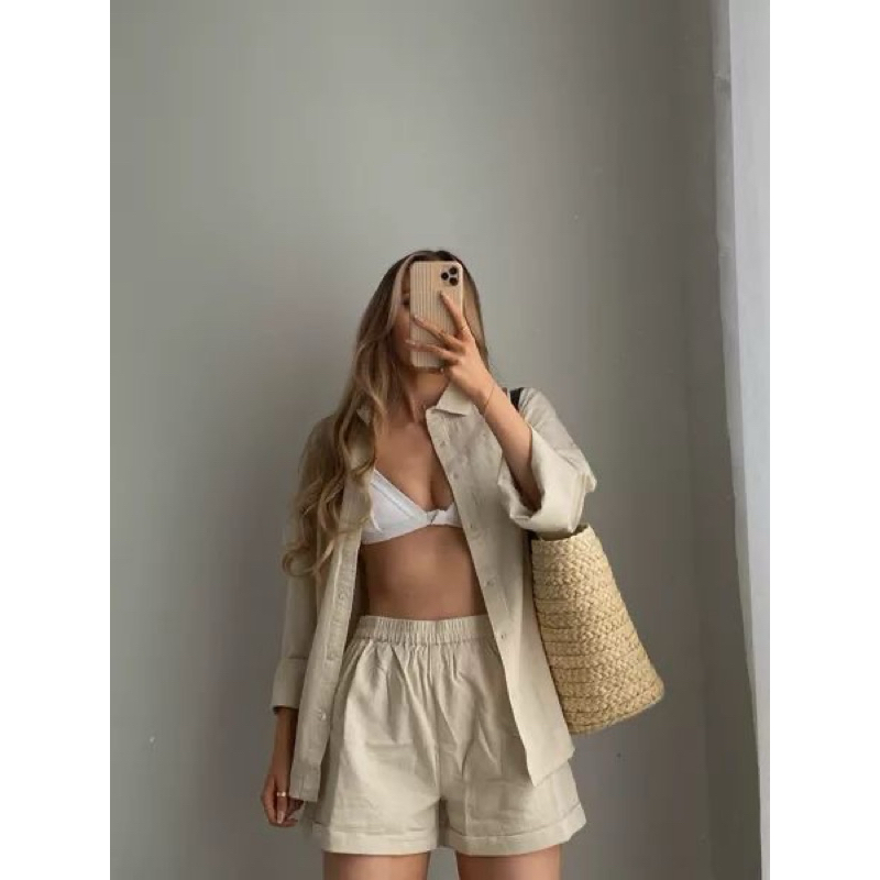 VENTOFF Bella Linen Set (Shirt & Shorts) - Set Kemeja Premium Pantai Celana Pendek Linen Wanita
