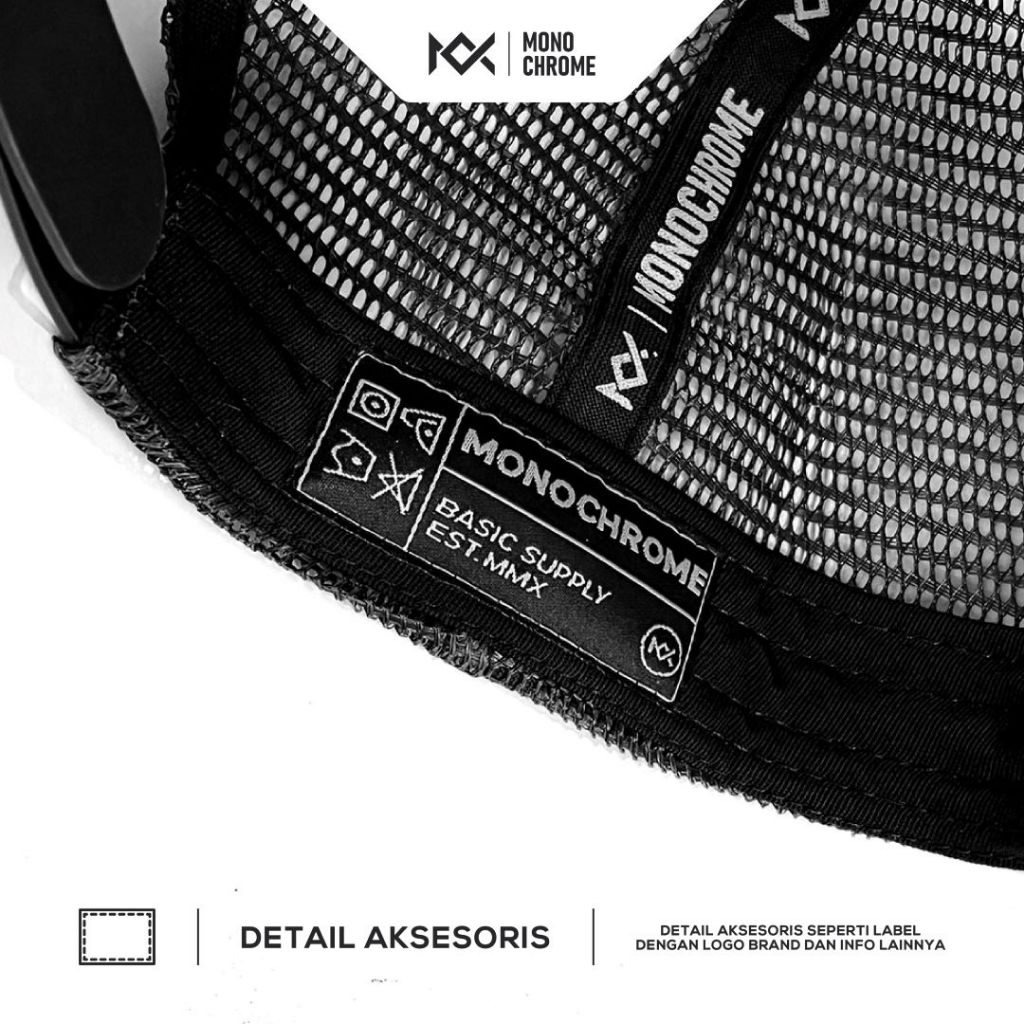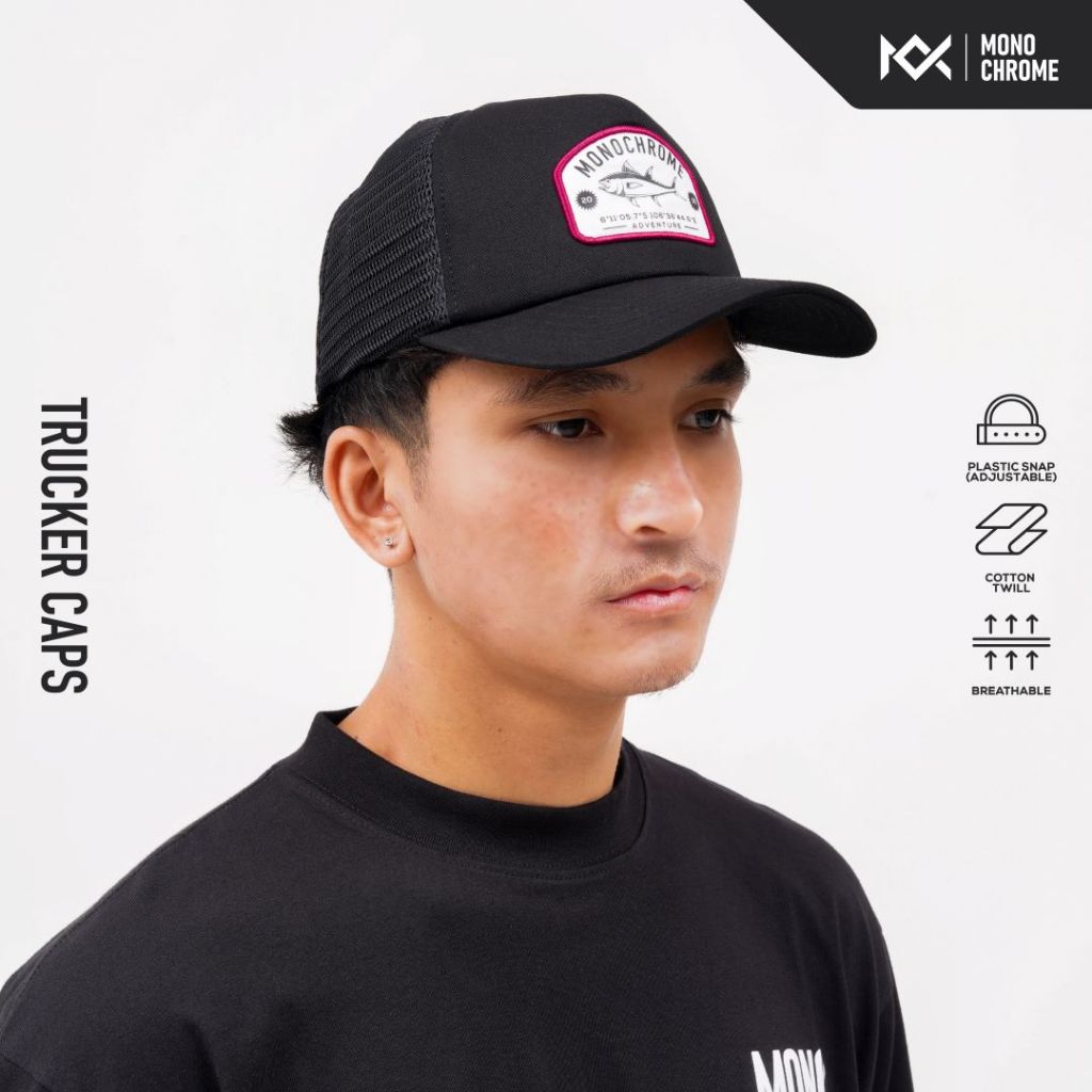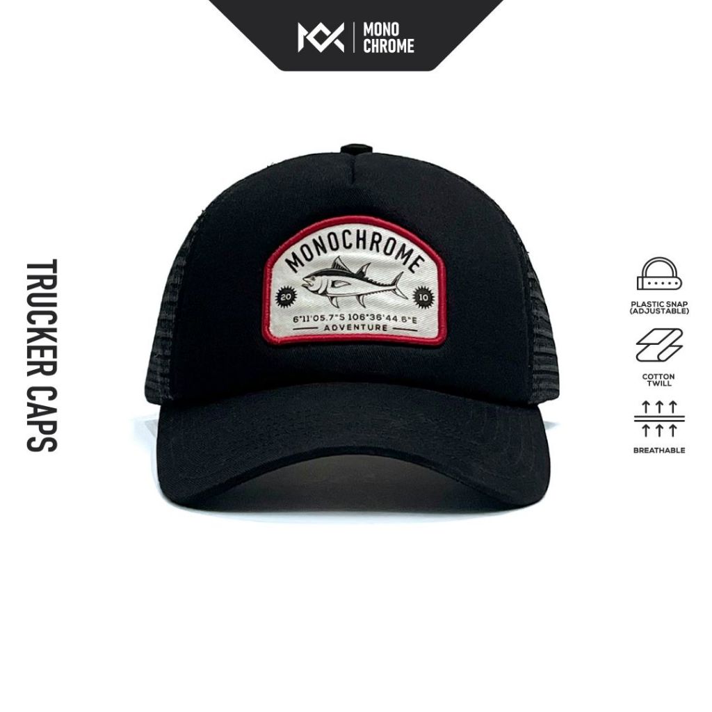 Monochrome Topi Pria Trucker Cotton Twill Hat Outdoor Black Tuna