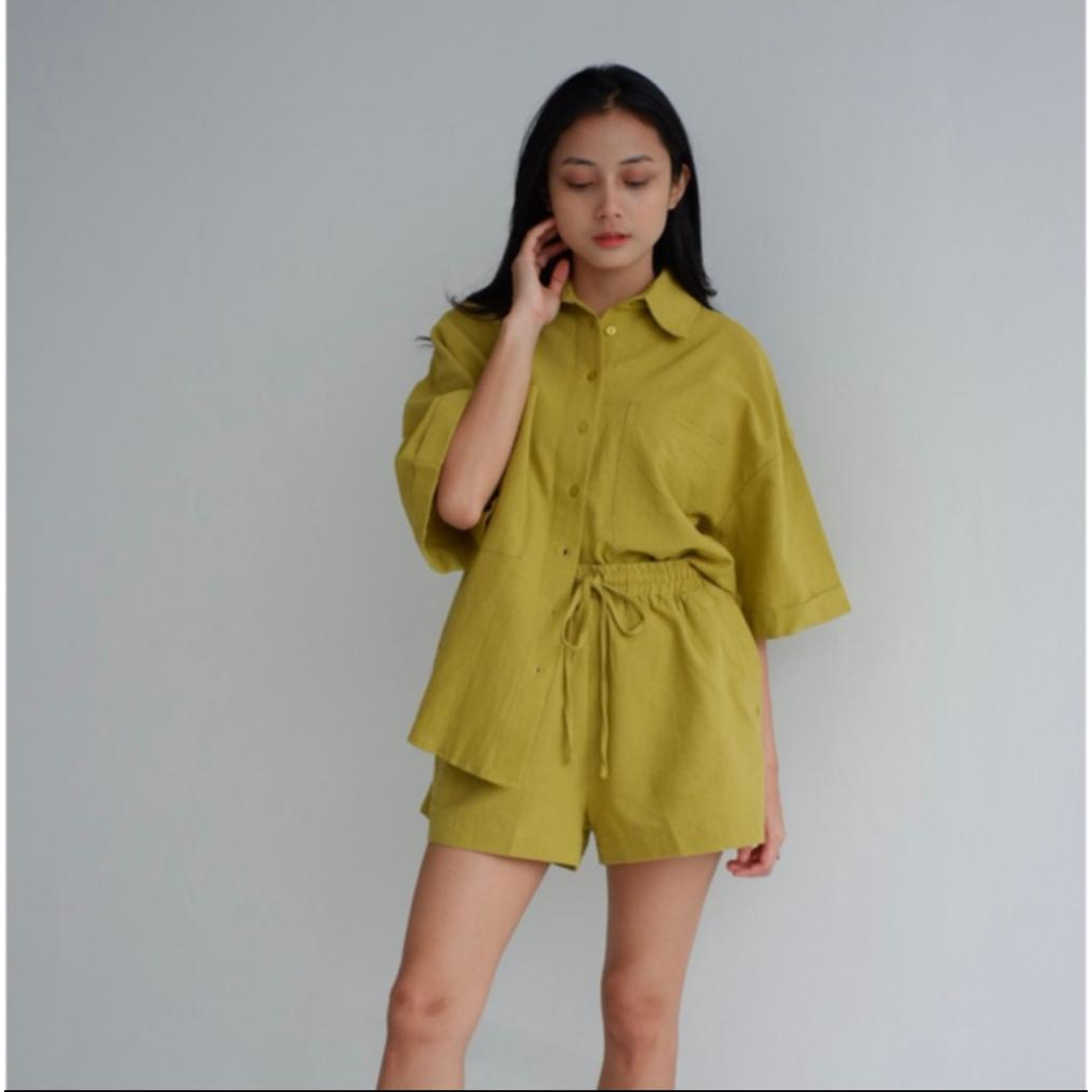 SUNSHINE MARIE - Set Linen Premium Setelan Baju Dan Celana Pendek Wanita