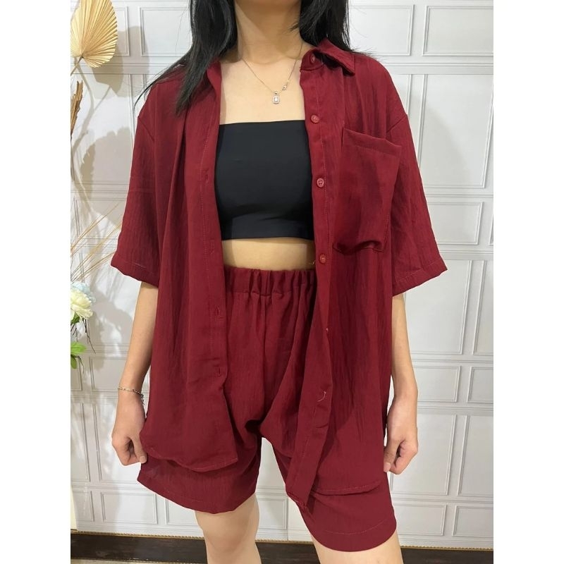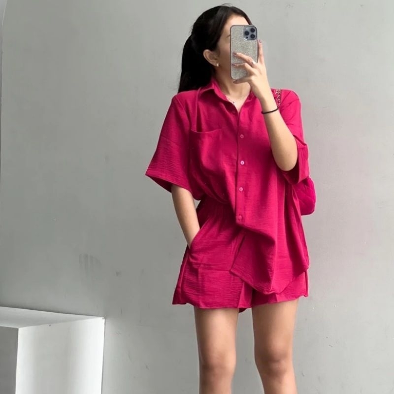 Kora One Set Hotpants Premium | Setelan Crinkle Airflow