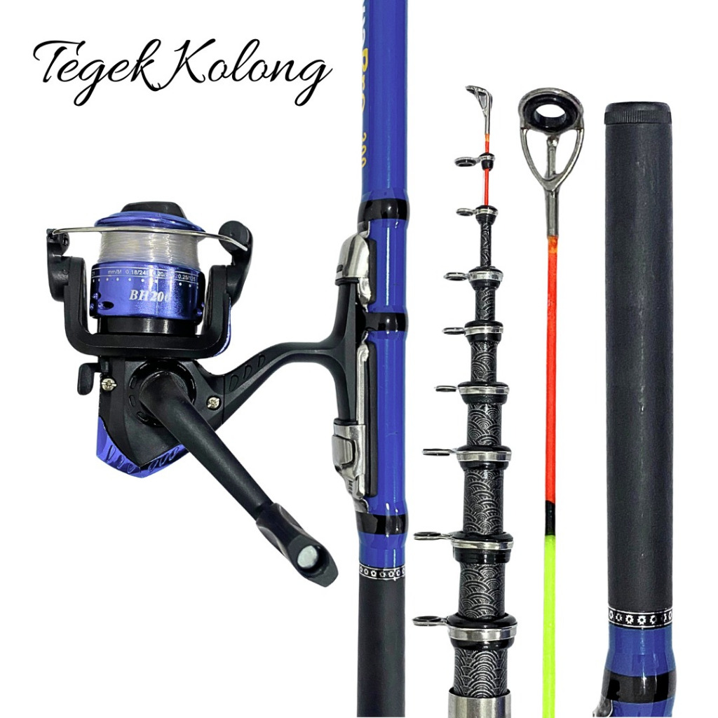 1 Set Paket Joran Tegek Teleskopik High Carbon Portable Action Light Lentur dengan Reel Pancing