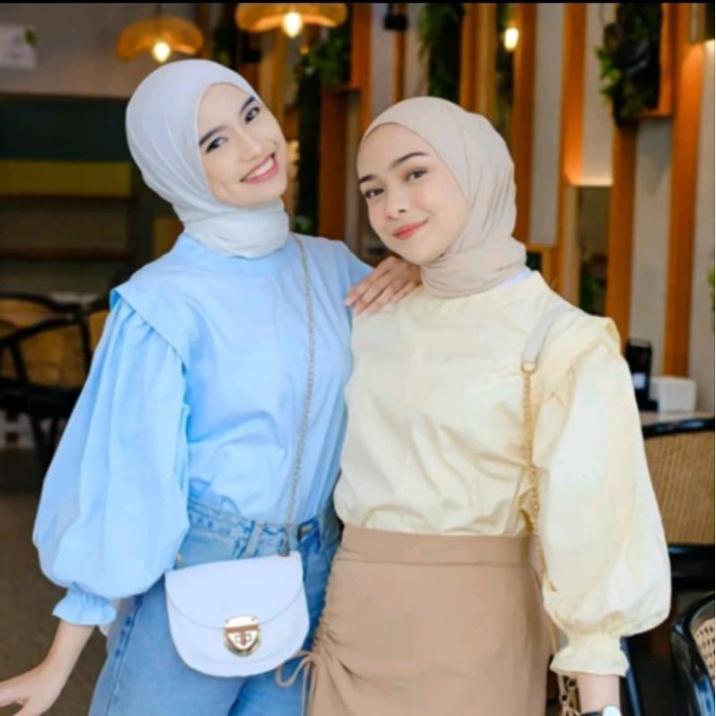 Moni Blouse Katun Linen - Blouse Puffy Lengan Balon - Atasan Wanita Korean Style