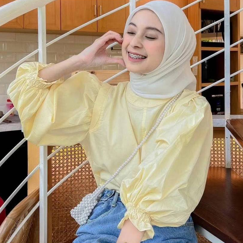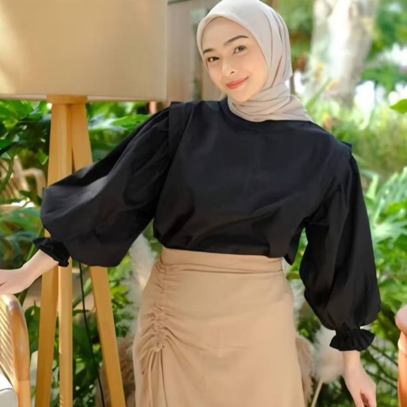 RAPUNZEL - Moni Blouse Katun Linen - Blouse Puffy Lengan Balon - Atasan Wanita Korean Style