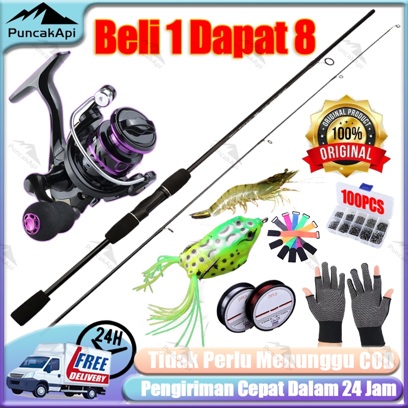 【# Beli 1 Dapat 8 #】Set Pancing 1.8m/2.1m Joran Pancing 1000-4000 Reel Pancing 150M Senar Pancing Umpan Combo pancingan set lengkap