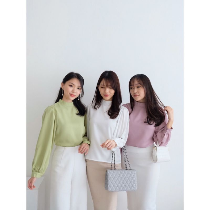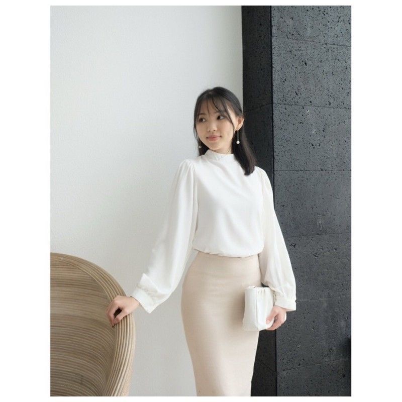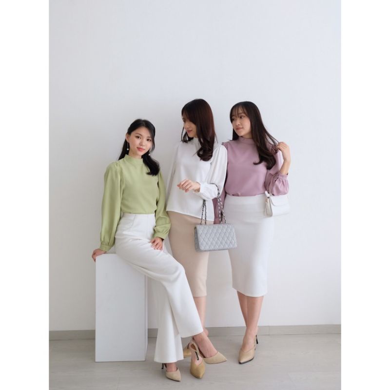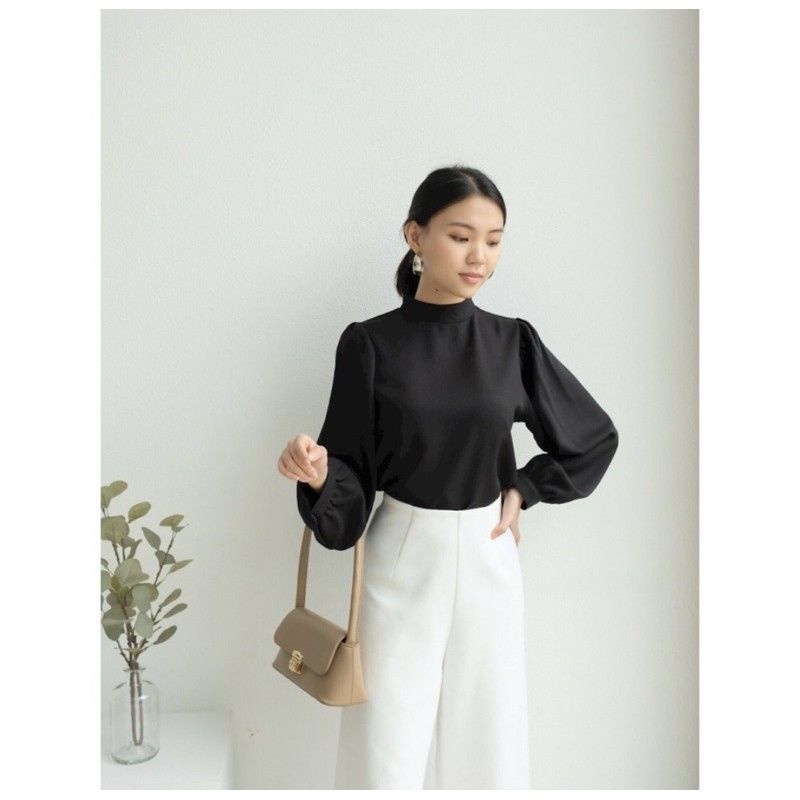 Blouse High Neck Tangan Panjang Puffy Korea Size S M L XL