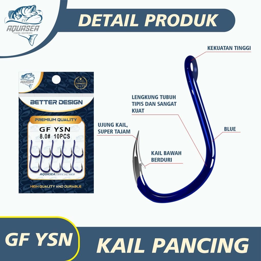 AQUASEA Kail Pancing (KAIL TYPE KECIL) Premium Biru isi 10pcs/pack Hook Tackle Kail GFYSN pancingan kuat antikeriting