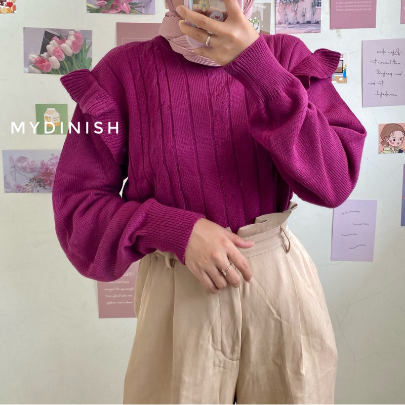 Fatira Ruffle Blouse - Atasan Rajut Wanita Motif Kriwil Kekinian
