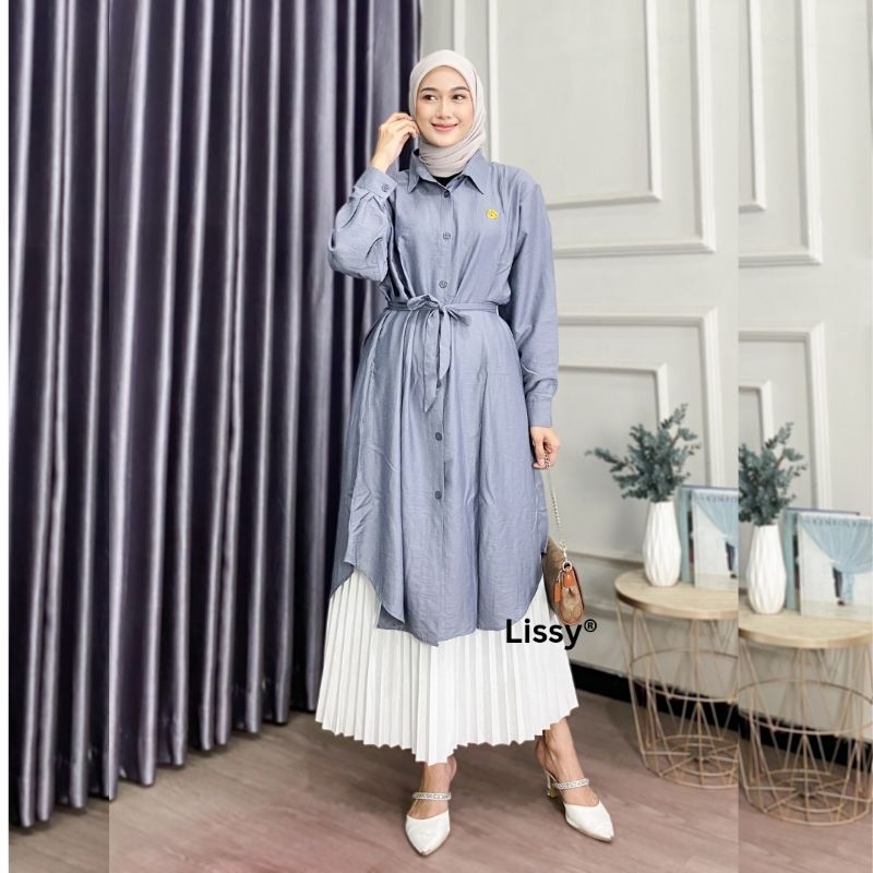 LISSY long tunik kemeja tunik wanita atasan wanita kekinia polo linen free tali pingganglt