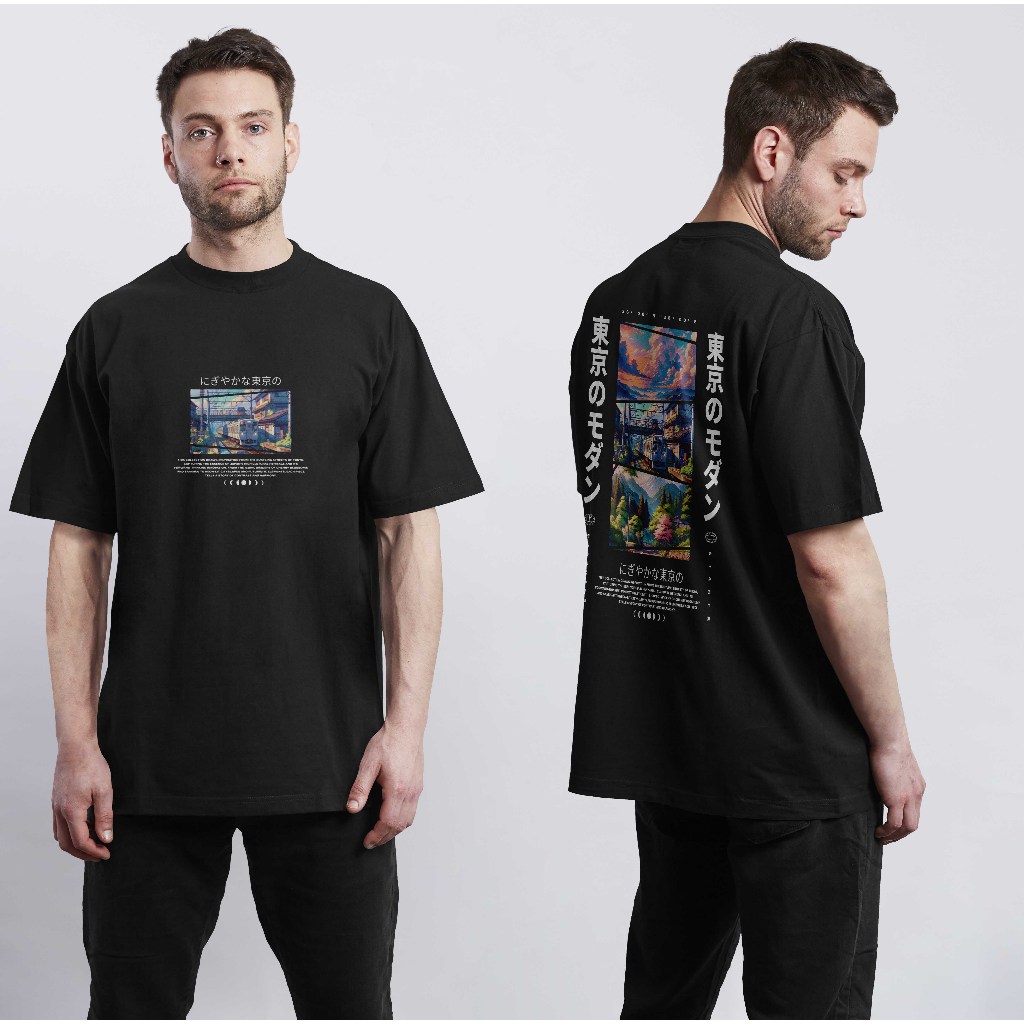 STARER Kaos Distro Lengan Pendek Vintage Cotton Black T-Shirt Oversize Pria Baju Sablon Oblong 0076