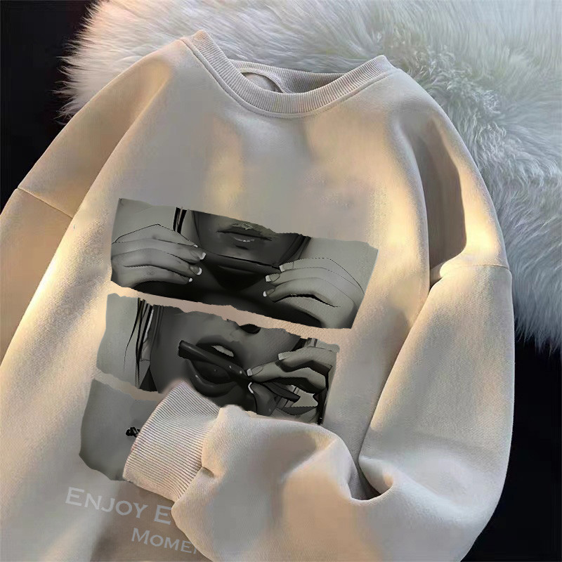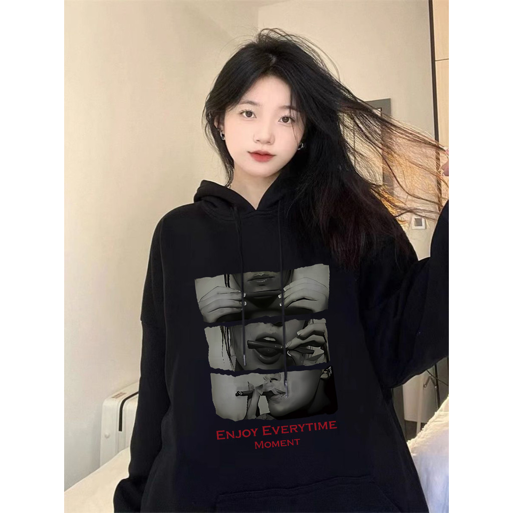 Po floret Baju Hoodie Wanita Oversize Cetakan Busana Gaya Jalanan Retro Sweater Hoodie Wanita Premium