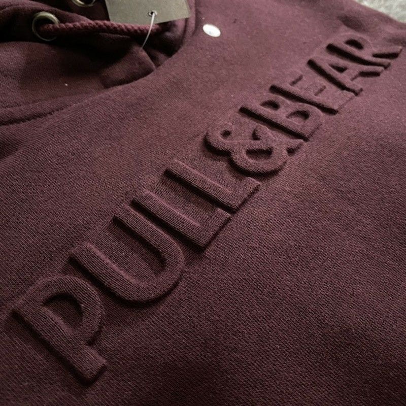 sweater hoodie pull and bear jaket pullover sablon embossed font timbul hodie