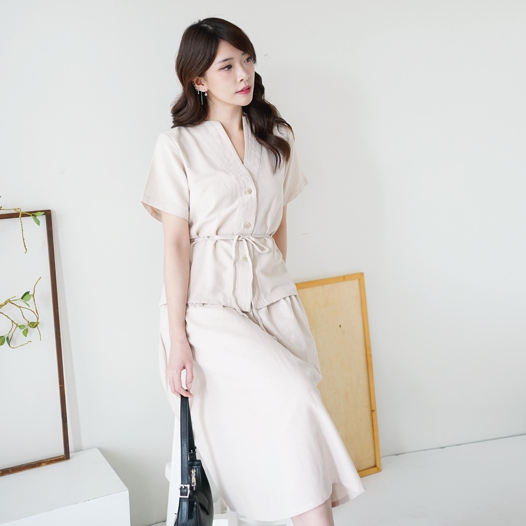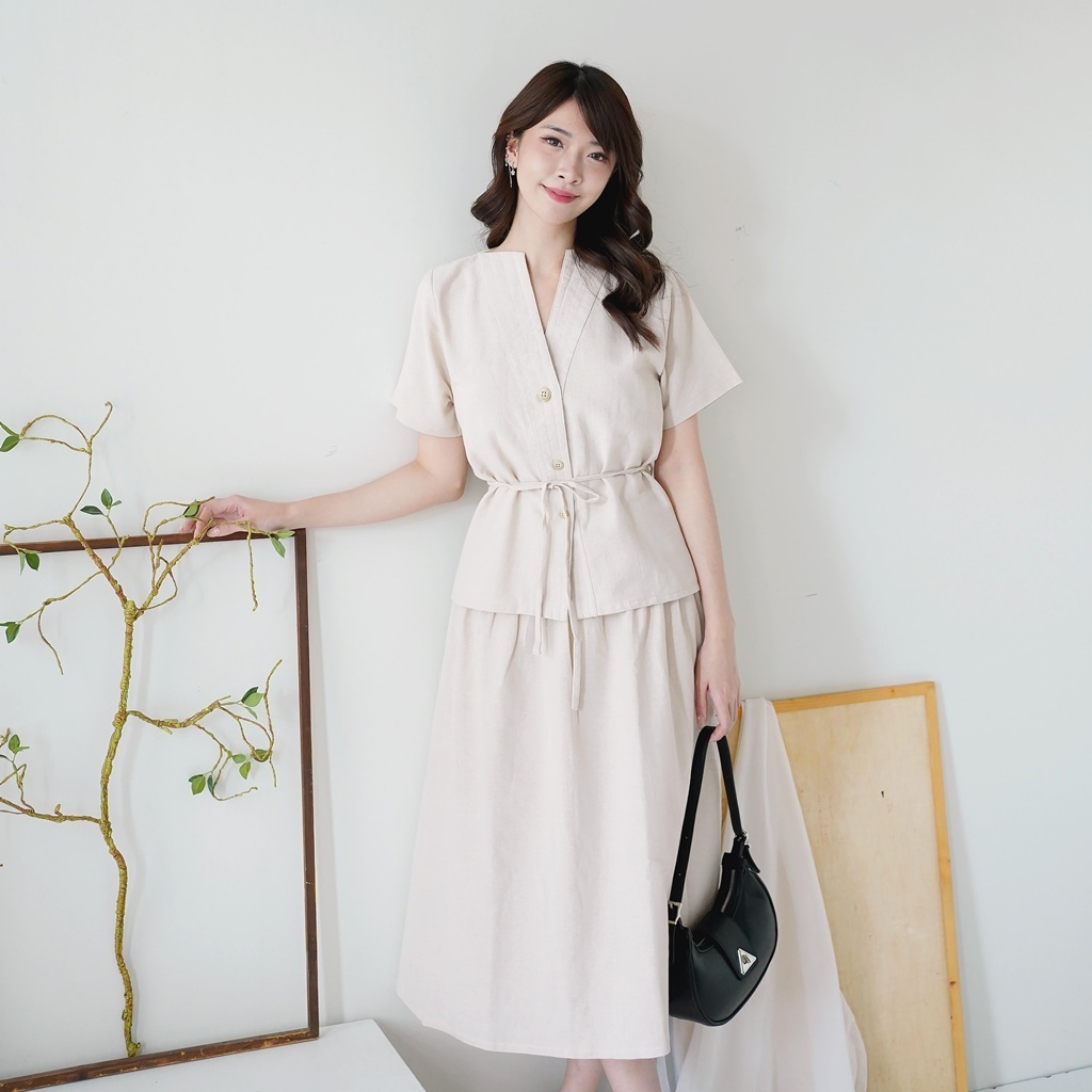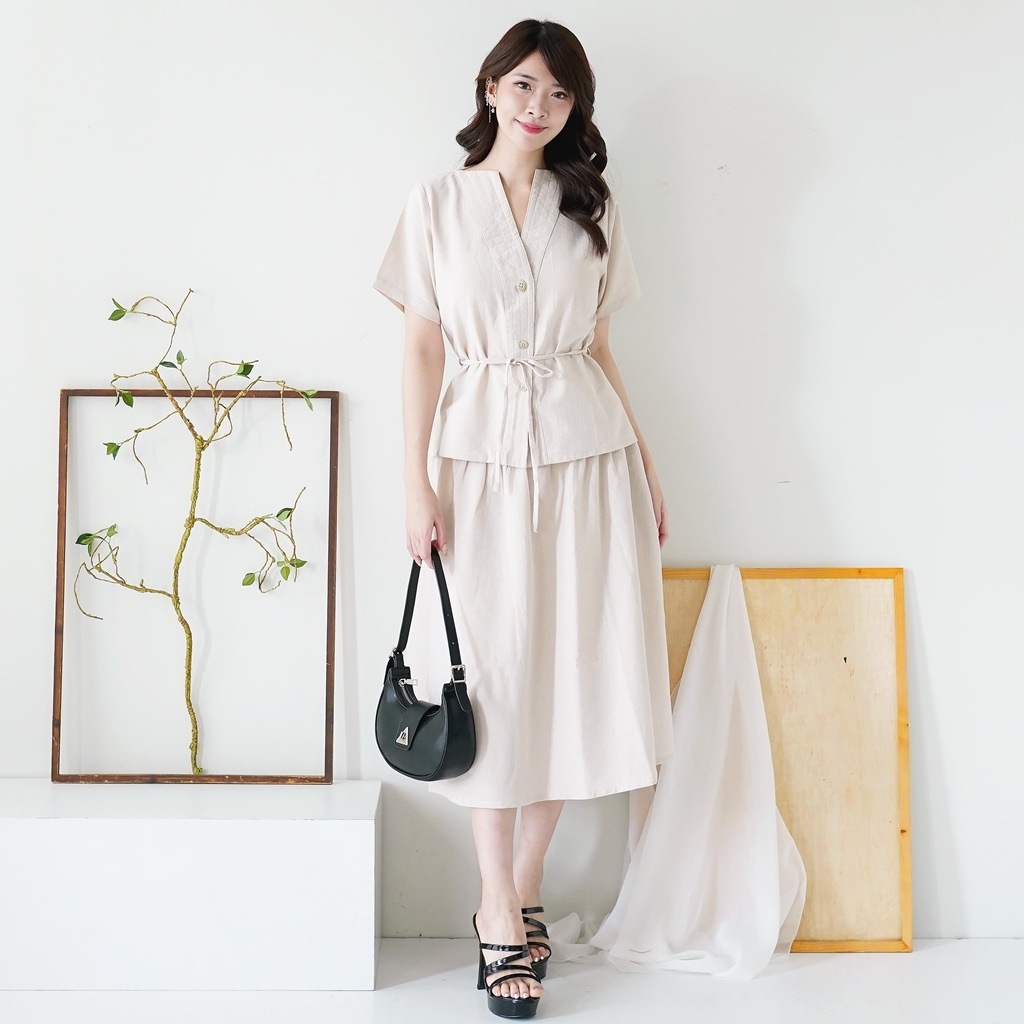 JOUETA | Ollia Top & Ollia Midi Skirt | Top dan Skirt Premium Linen Set Hitam Cream