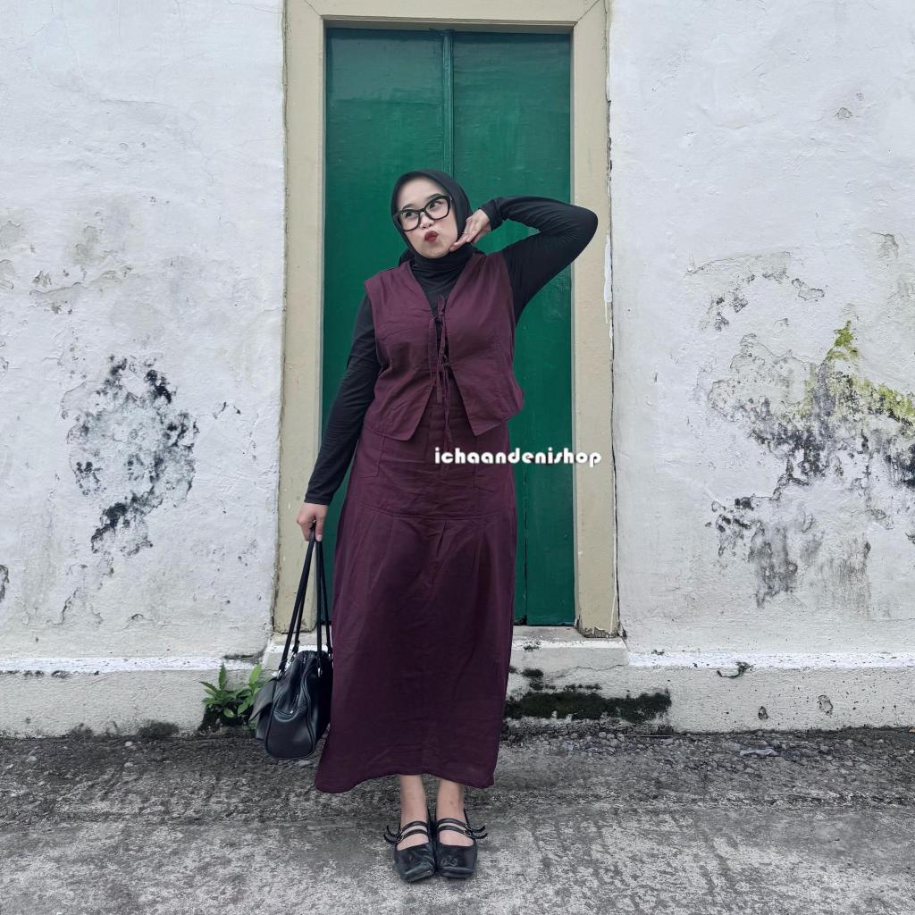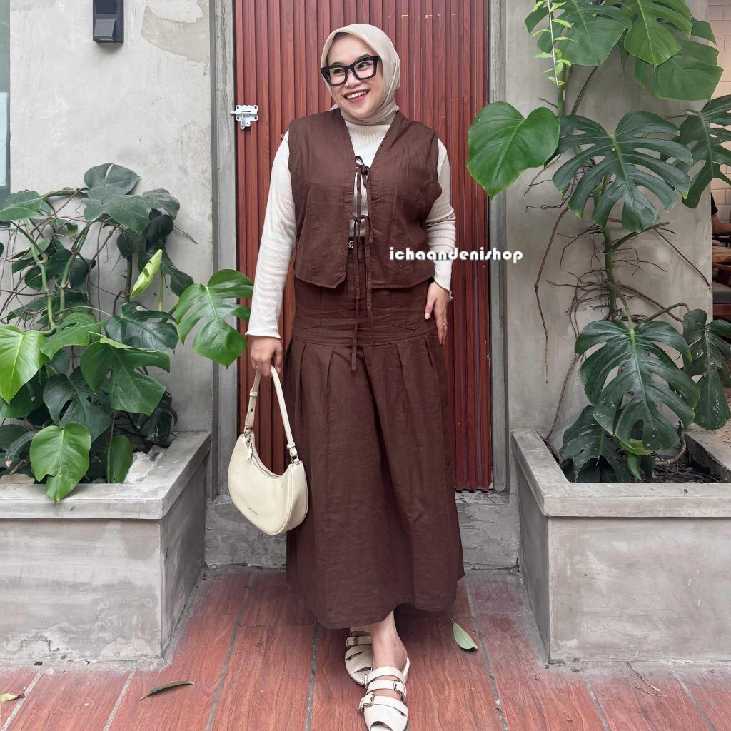 Kaizy One Set Vest & Rok Linen Bigsize Wanita Korean Style