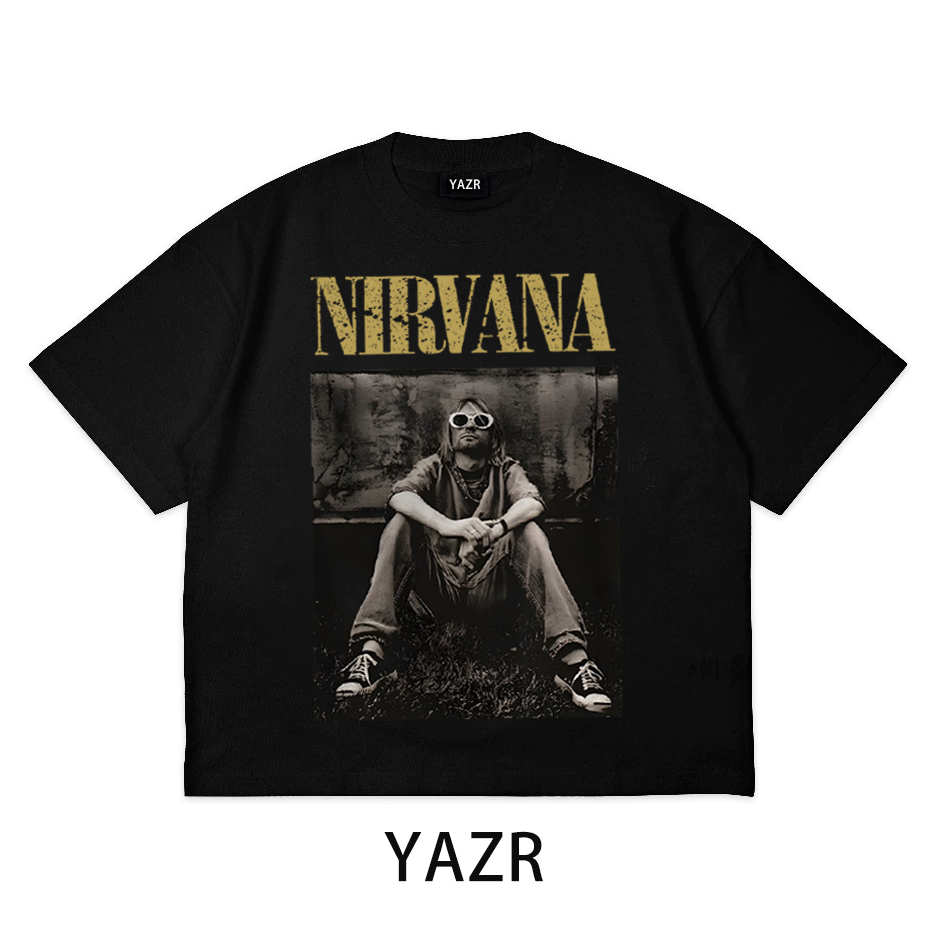YAZR Kaos Boxy Oversized NIRVANA BAND T-Shirt HITAM Unisex - Cotton Combed 24s