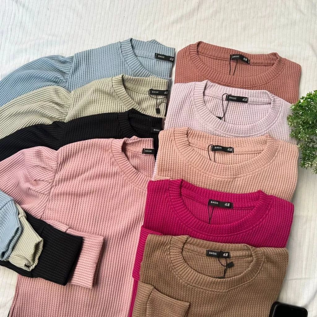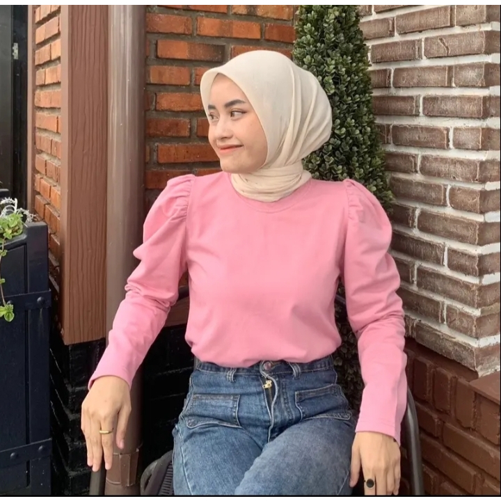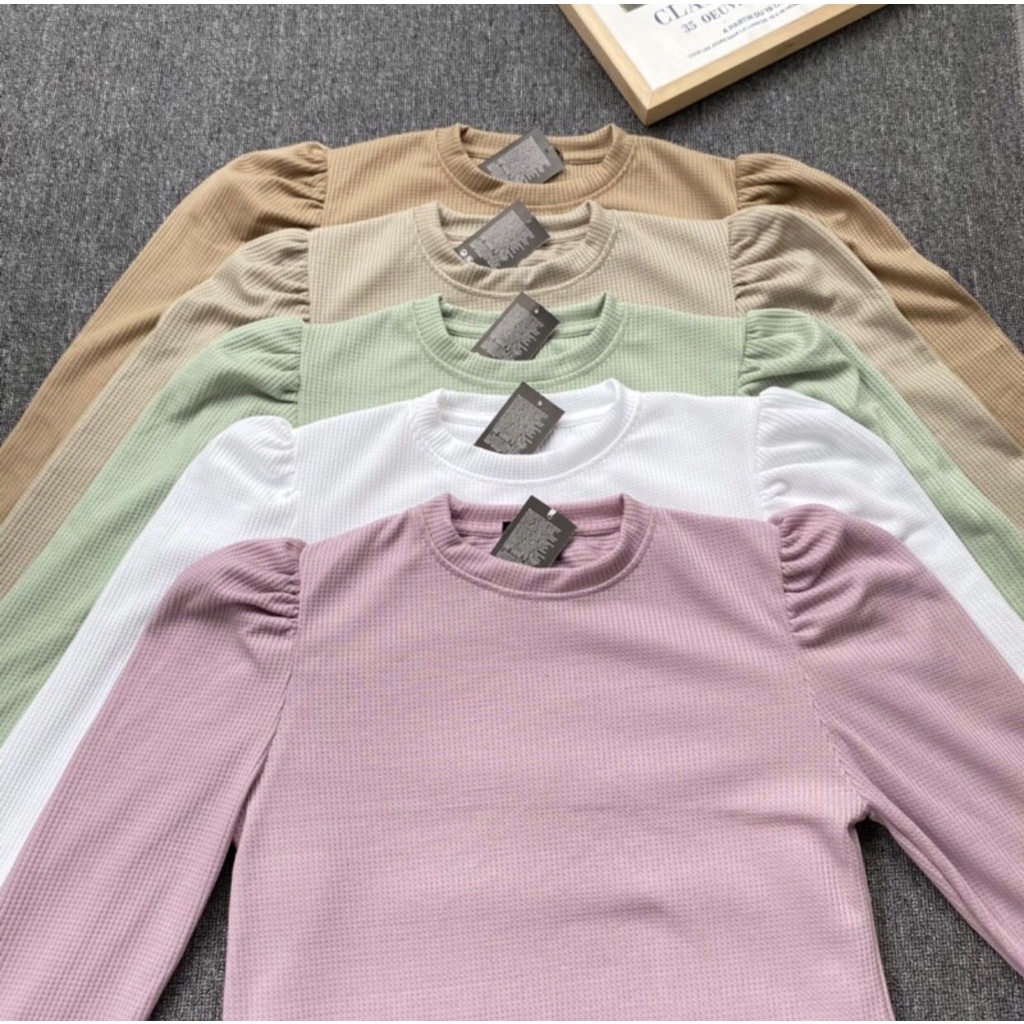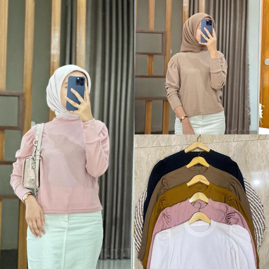 Kaos Atasan Puffy Shoulder Top Waffle Waffer Wanita Terbaru Kekinian