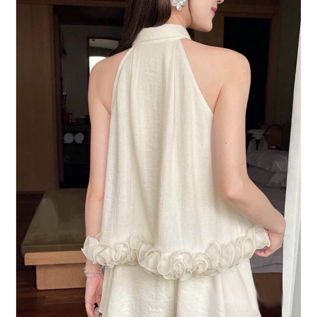 Ruffle Hem Collared Loose Top with Shorts Set SET7521