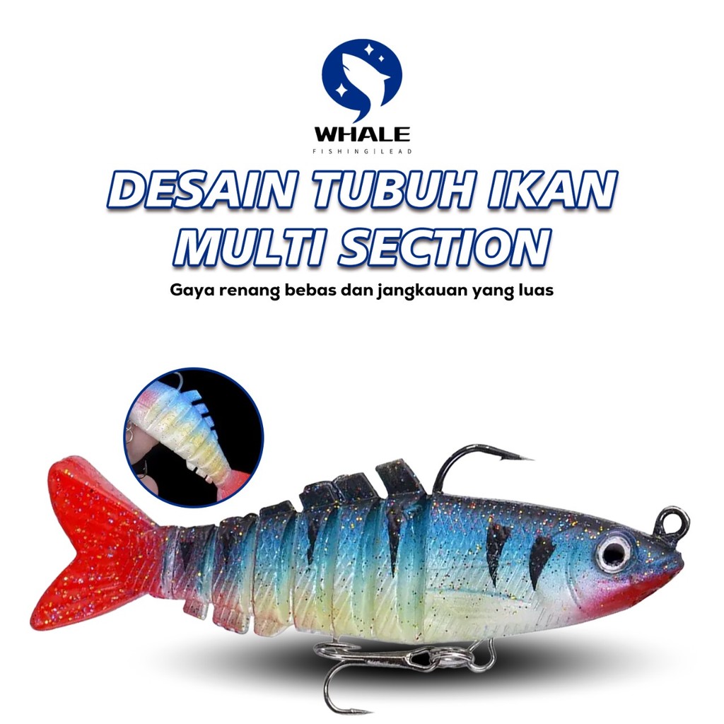 WHALE T-tail lead fish 9cm berat 17.5 gram lengkap dengan kail Ikan timah ekor T