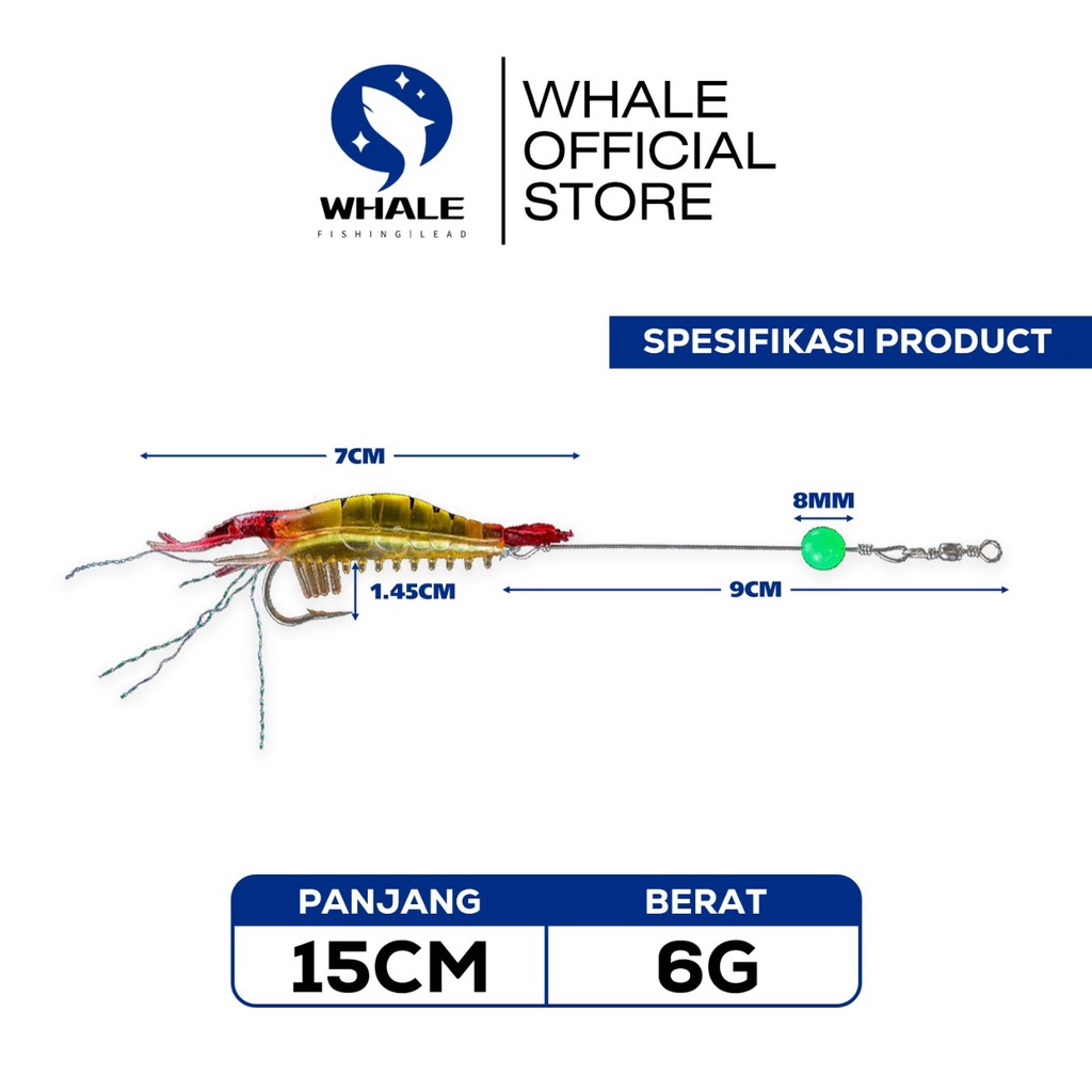 WHALE UMPAN UDANG BISA MENYALA BAHAN KARET BERAT 15CM 6G