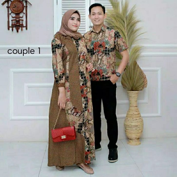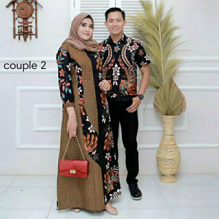 Baju gamis Batik couple dress tunangan kemeja pria hem cowok muslim lebaran idul fitri