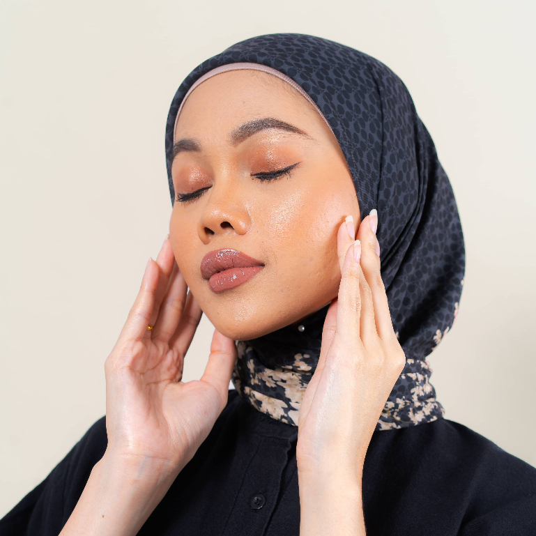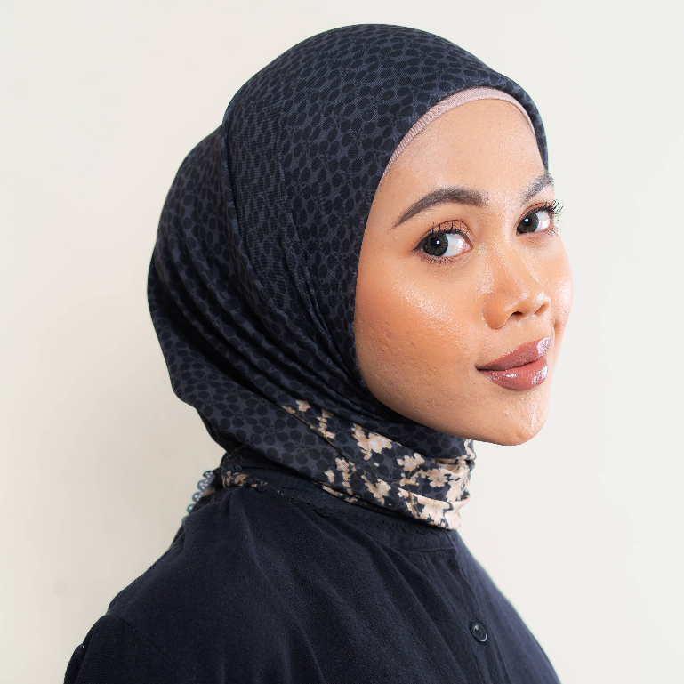Wulang Narawangsa Hijab Segi Empat Sakura Black | Kerudung Segi Empat | Hijab Motif Segi Empat | Hijab Voal Premium