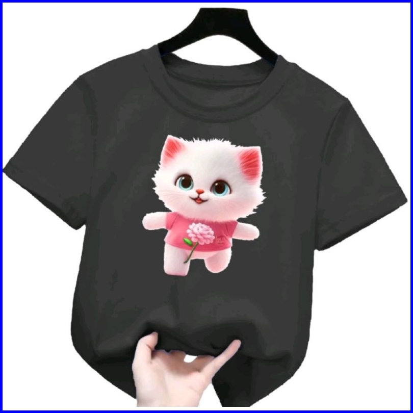 Kaos Atasan Anak Motif Kucing Pelangi Lucu Pakaian Anak Unisex Untuk Umur 1-10 Tahun