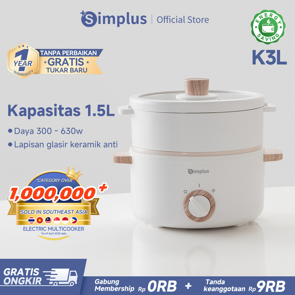 [Star] Simplus Panci Listrik Kapasitas 1,5L Panci Serbaguna Anti Lengket Dengan Kukusan 2 Mode Panas
