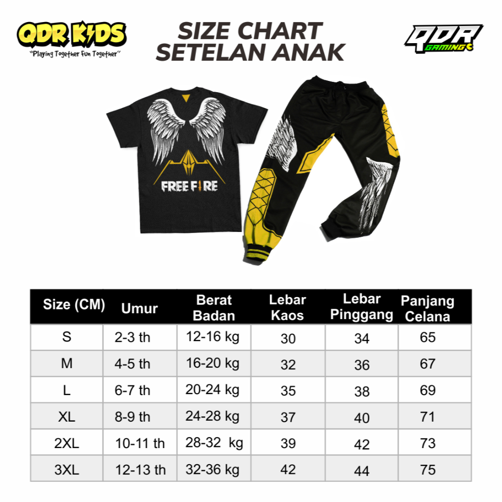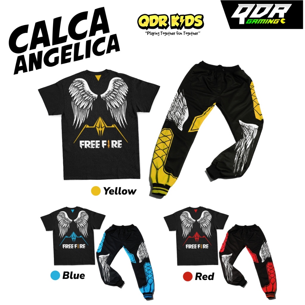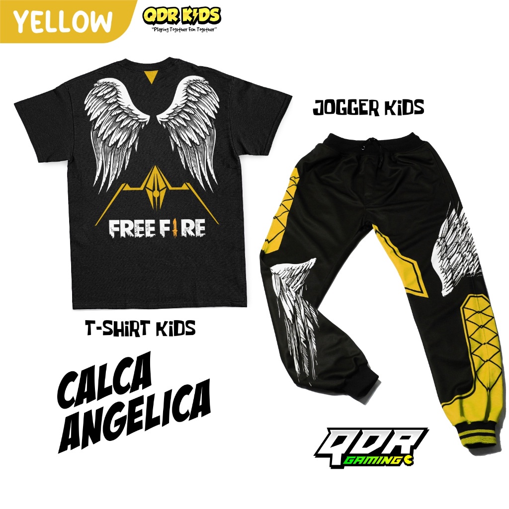 Setelan Angel Yellow Kaos Celana FF Calca Freefire Set Anak Laki-laki qdronlineshop