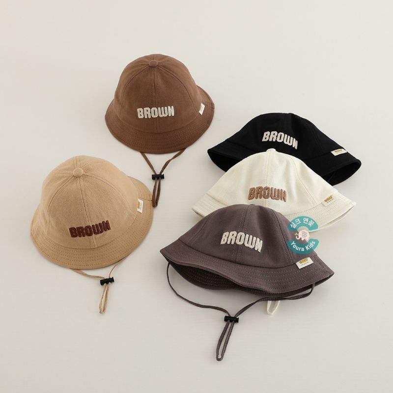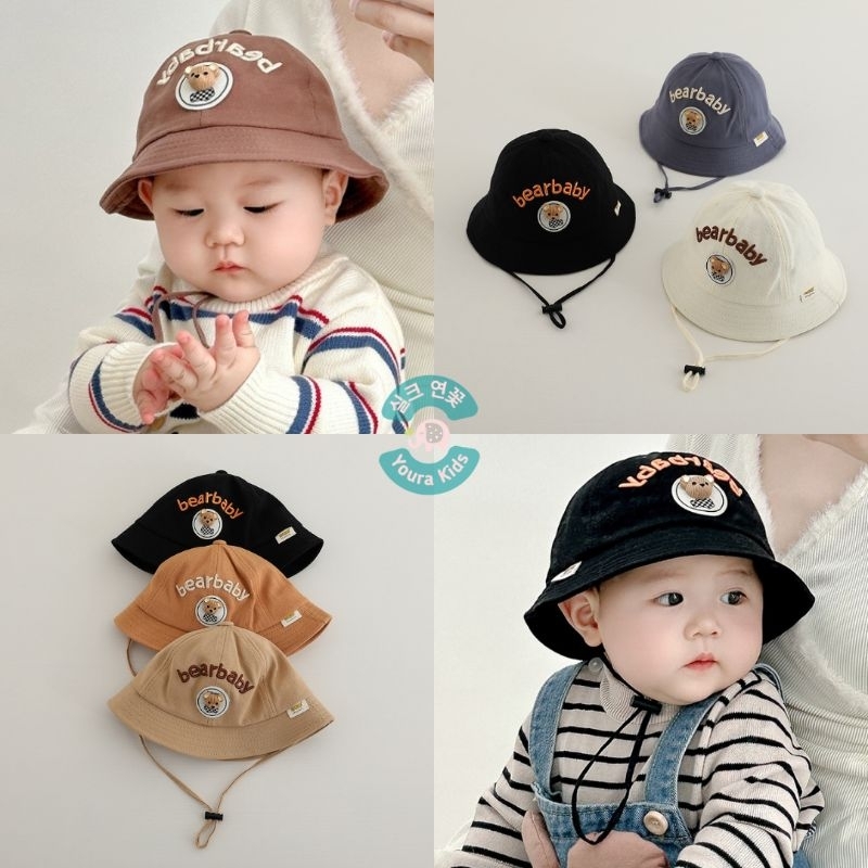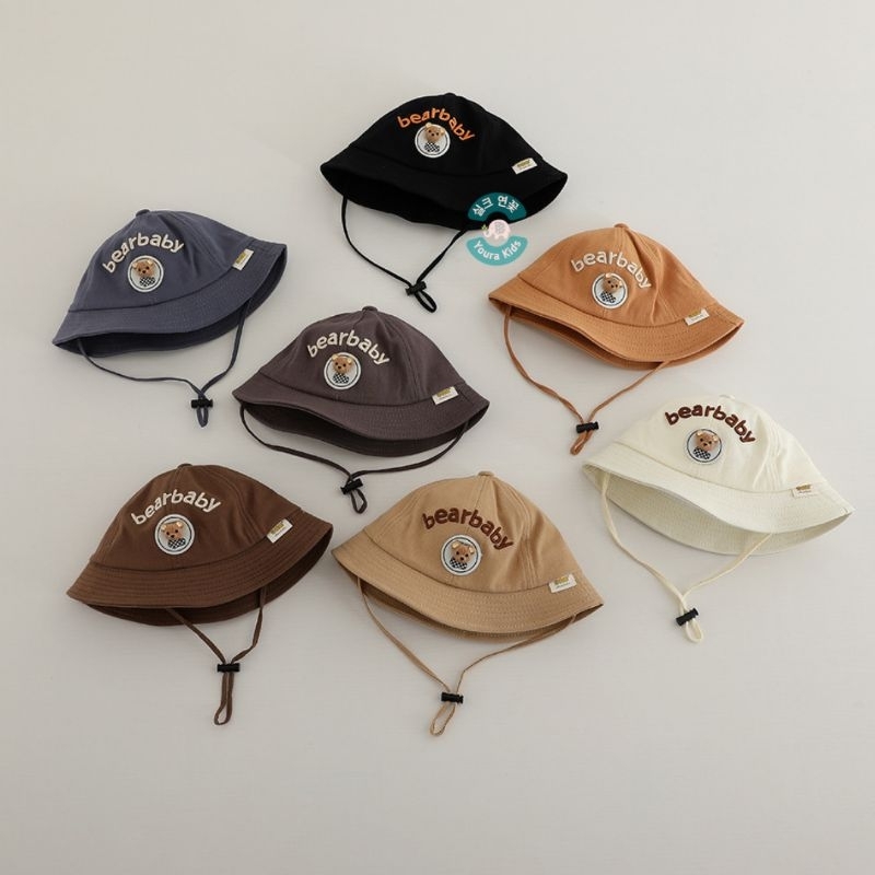 [Mall] 6-36 Bln | Topi Bucket Anak Bayi Batita-Bear Baby, Brown & Hi-Unisex-Korean Model