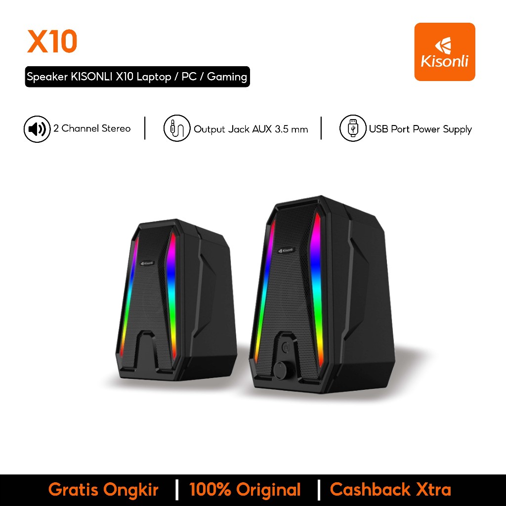 Speaker KISONLI X10 Laptop / PC / Gaming Soundbar Super Bass RGB Lighting - Garansi 1 Tahun bluetooth terbaru aktif pma