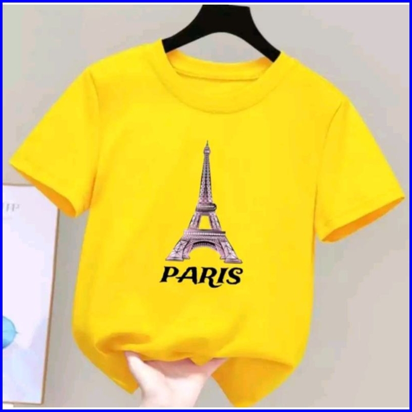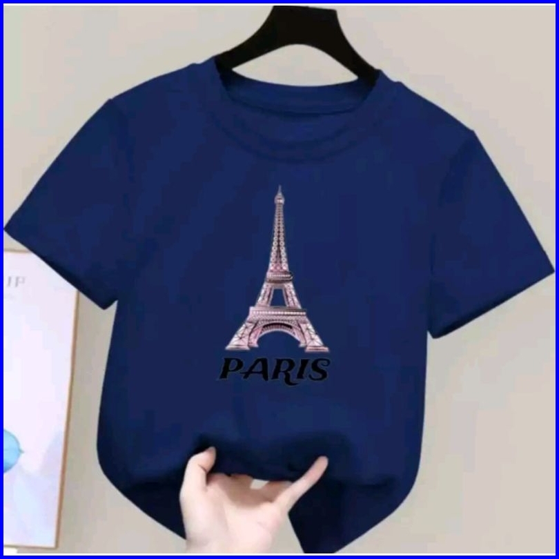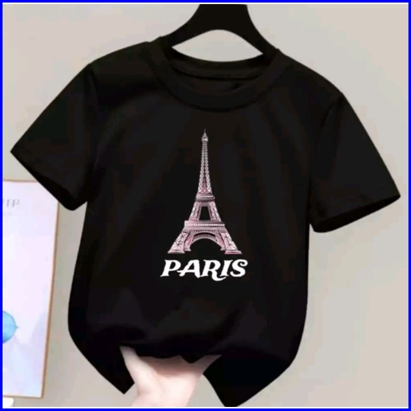 Kaos Oblong Anak Perempuan Motif Paris Usia 2-10 Thn