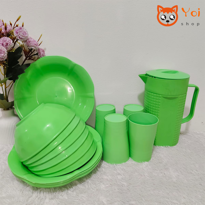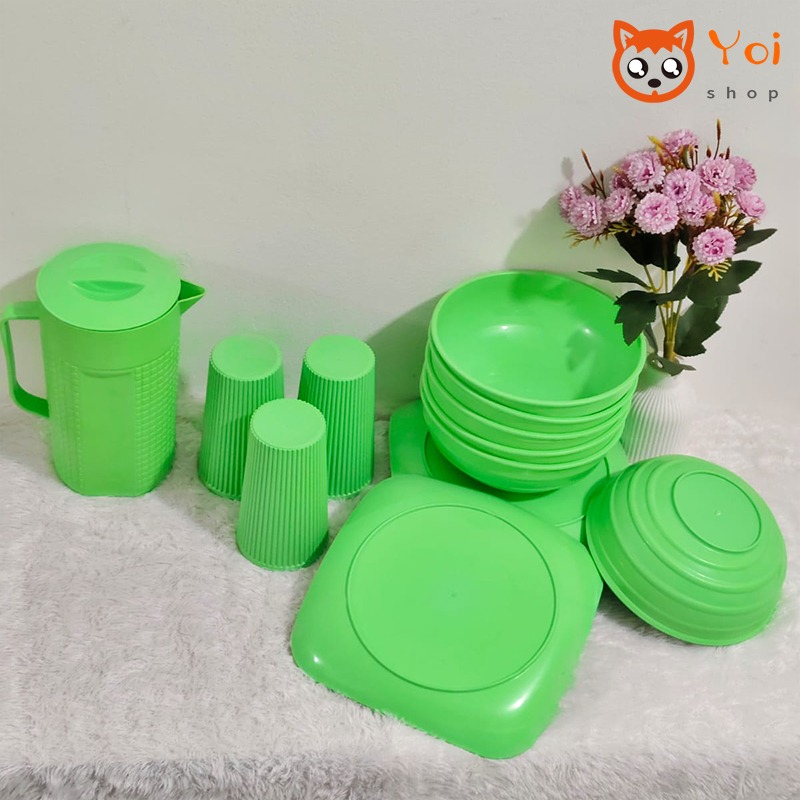 [Star] Terlaris Yoi - (16 Pcs) Mangkok Set / Piring Aesthetic / Piring 6 Mangkuk 6 Teko 1 Gelas 3