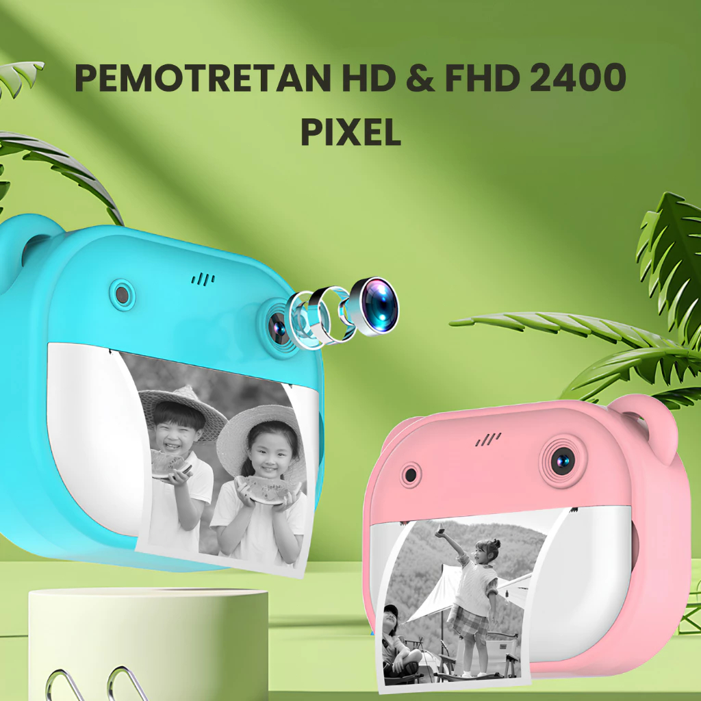 【Free SD】Digital Print Kamera 2 inch 48MP Portable Mini Printer Dengan Layar Kamera Pocket Camera Anak Mini Digital Pencetak Foto Hitam Putih Pixel Video
