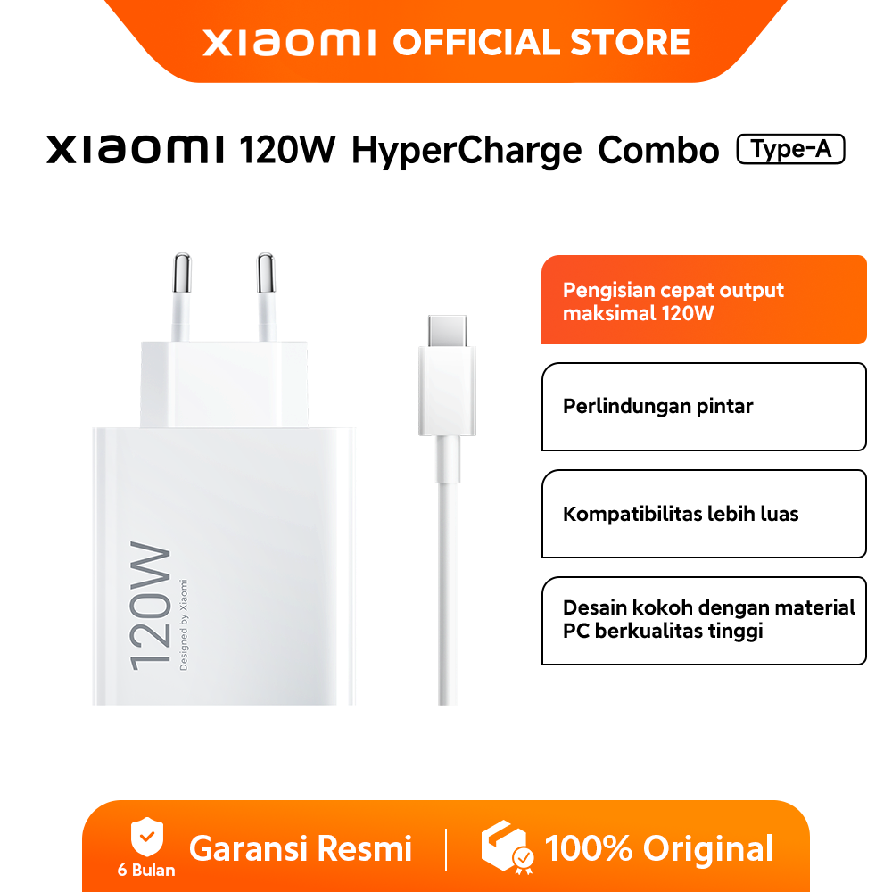Xiaomi 120W HyperCharge Combo Tipe-A | Output daya hingga 120W | Perlindungan Pintar | Kompatibilitas Luas Store