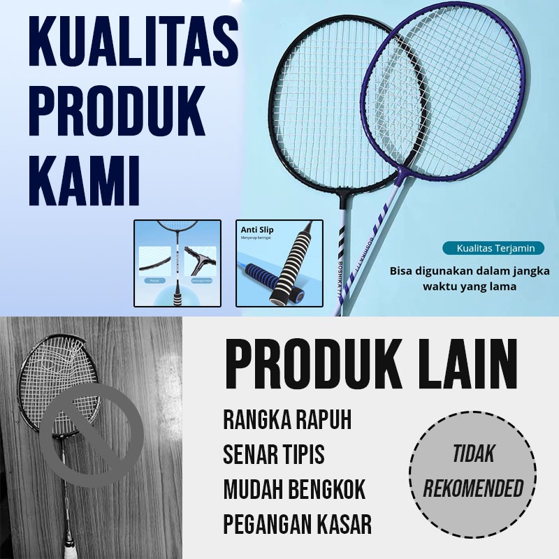 Raket Badminton Bulutangkis Set 2 Pcs + Tas Raket & 3 Kok – Raket Pegangan Spons Awet Ringan