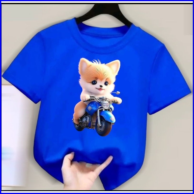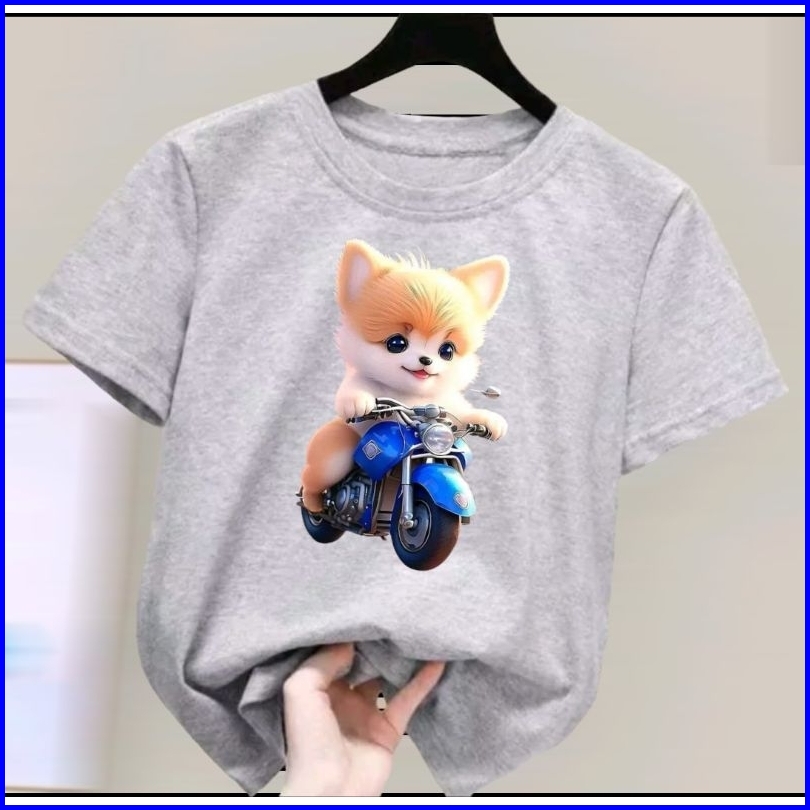 Kaos Atasan Anak Perempuan Motif Kucing Naik Motor Usia 2-10 Tahun