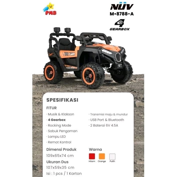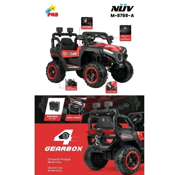 (FREE PELAPIS BAN) MOBIL AKI ANAK JEEP PMB M-8788 UTX M8788 / MOBIL AKI ANAK PMB 8788A M8788A M-8788A NUV 4GEARBOX HIGH
