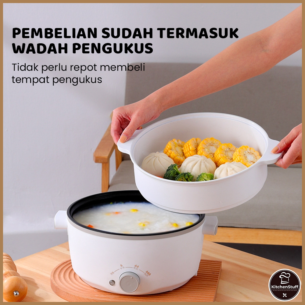 Panci Listrik Serbaguna 3L Anti Lengket Teflon - Multifungsi dengan Kukusan 600W | KITCHEN STUFF