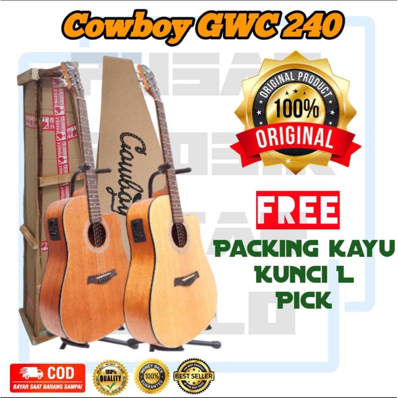 TERLARIS!!! Gitar ORIGINAL COWBOY GWC 240 Akustik Elektrik Free packing kayu