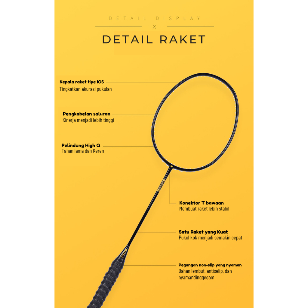Raket Badminton Carbon GR 520 Silver + Senar & Cover – Raket Bulutangkis Ringan Kuat Original