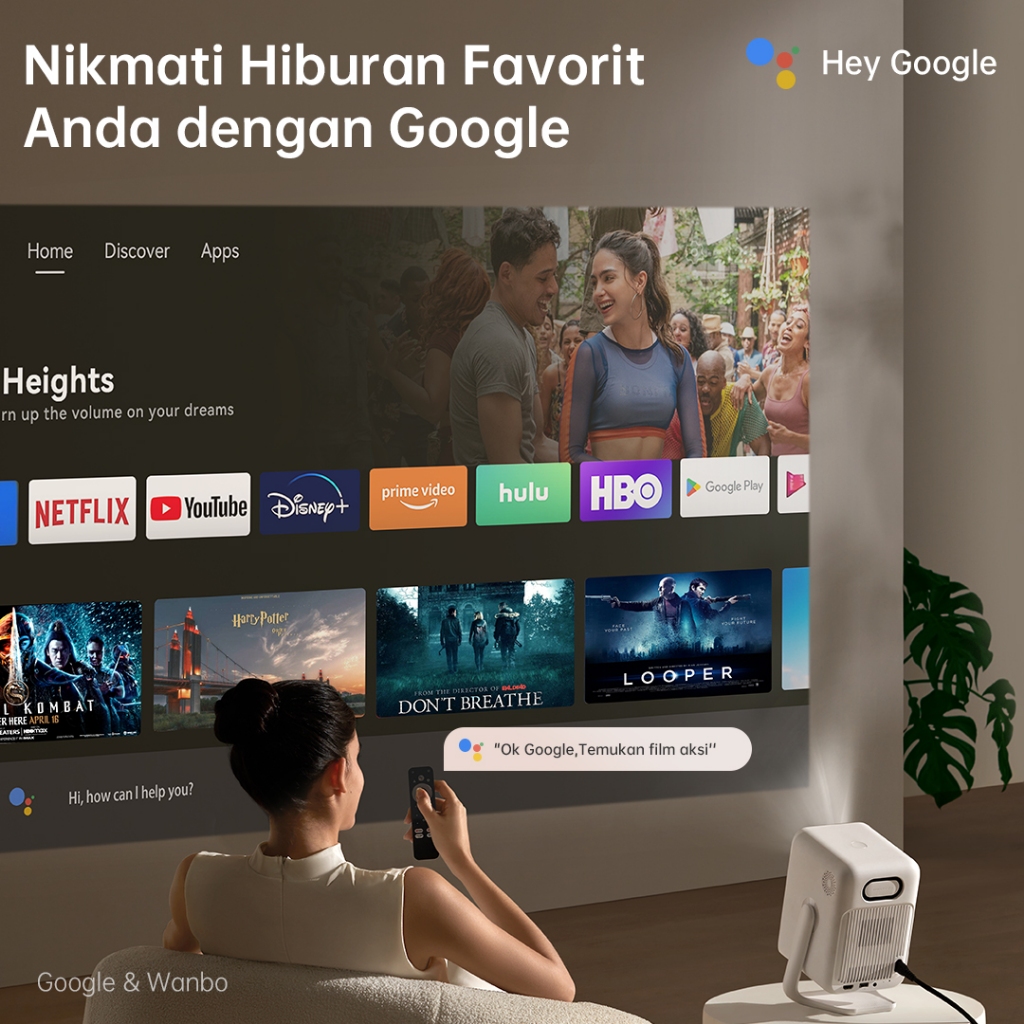 Wanbo T2 Ultra Proyektor Android TV 5W*2 Speakers 500ANSI Lumens Auto-focus 1080P 120° Rotating Projection Android 11