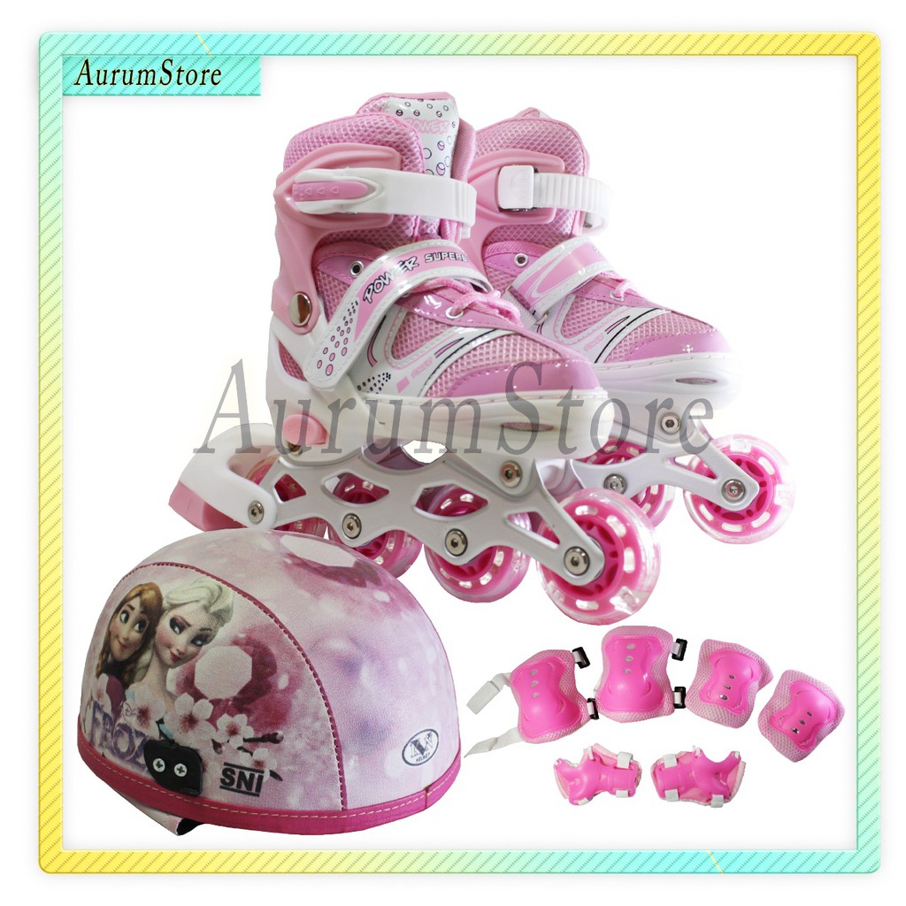 Sepatu Roda Anak Laki Laki Dan Perempuan Sepatu Roda Inline Skate + Dekker + Helm S M L Set