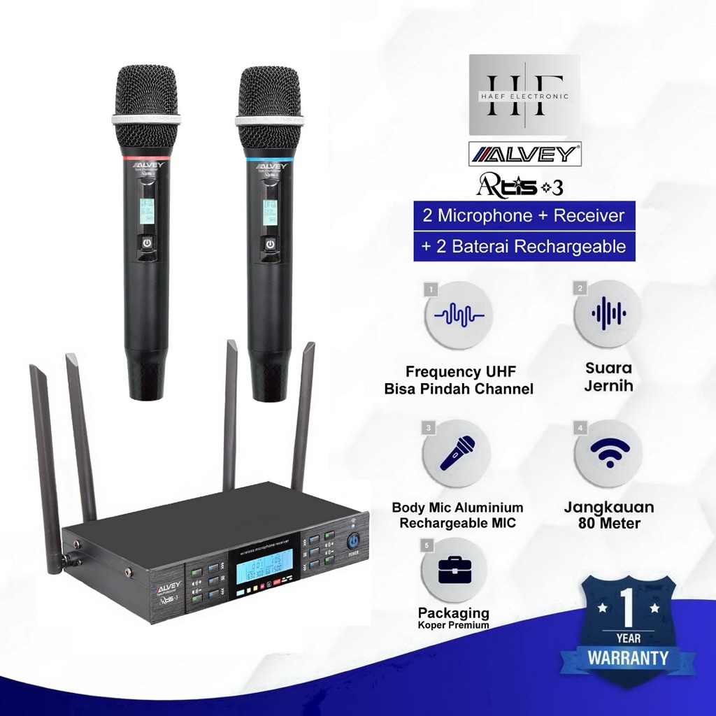 Microphone Wireless ALVEY ARTIS-3 Mic Karaoke Bisa Atur Frekuensi Dan Pisah Vokal HF_ELECTRONIC