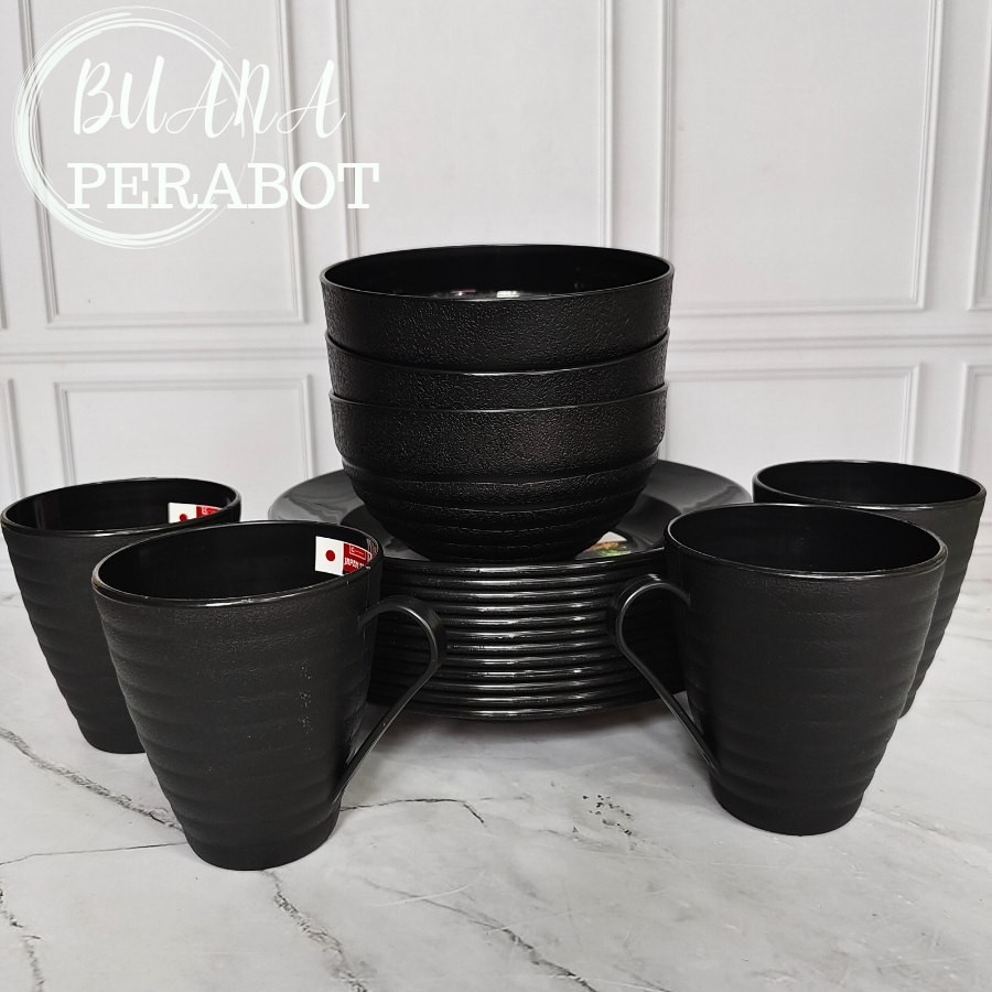 [Star] PROMO SET KOMPLIT RAMEN HITAM POLOS ISI 12 PCS CAMPUR PIRING MANGKUK DAN CANGKIR MINUM PLASTIK TEBAL PREMIUM BARU
