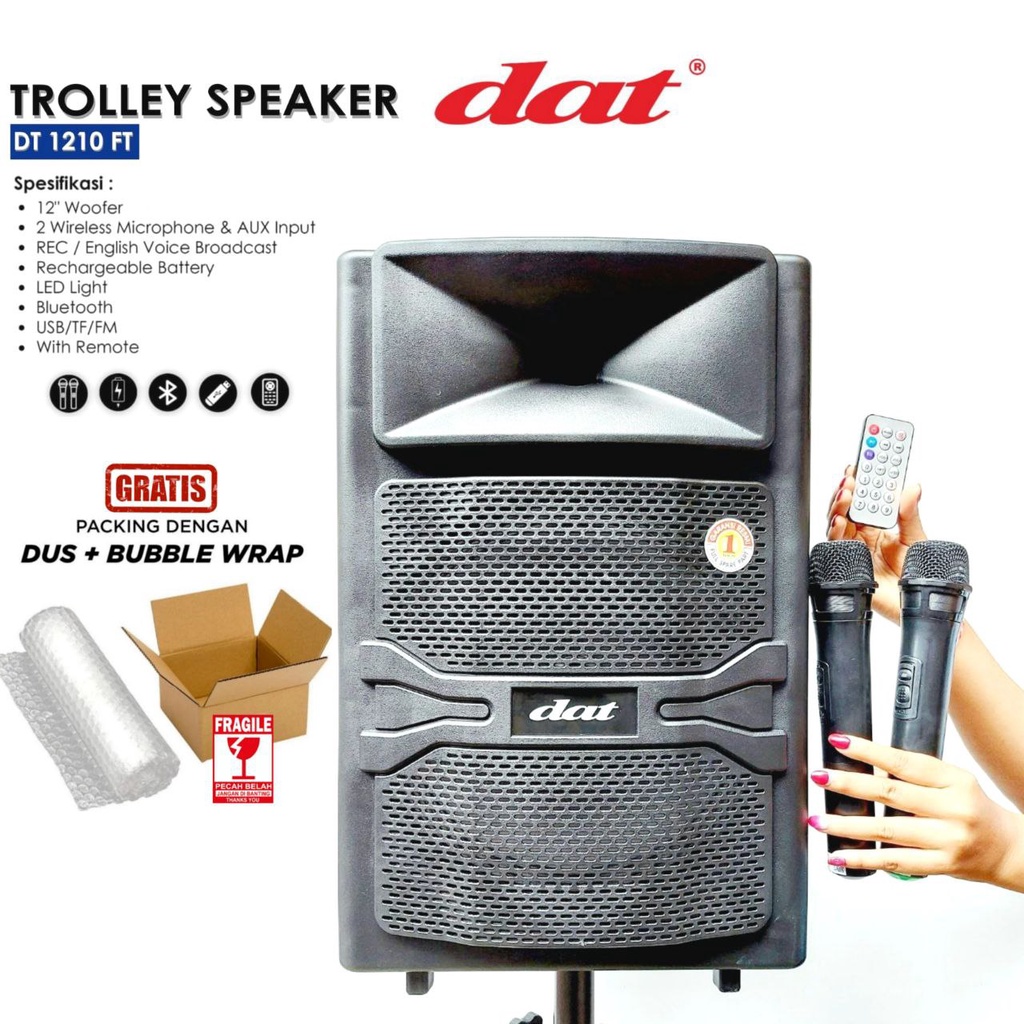[Star] SPEAKER PORTABLE SPEAKER DAT DT 1210FT 12 INCH MIC WIRELESS 2 UNIT SPEAKER TROLLY SPEAKER TERBARU TERLARIS 2025