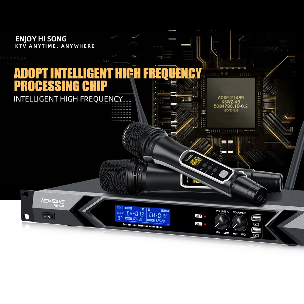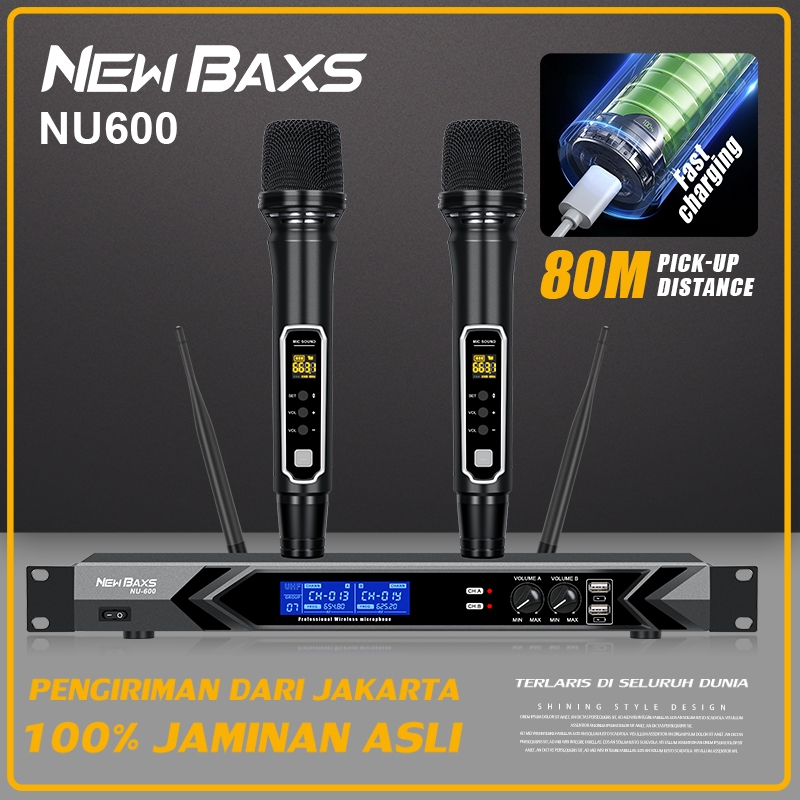 NEW BAXS mic wireless karaoke murah NU600 Wireless Microphone Peralatan audio mikrofon nirkabel Pilihan Profesional, 2 g