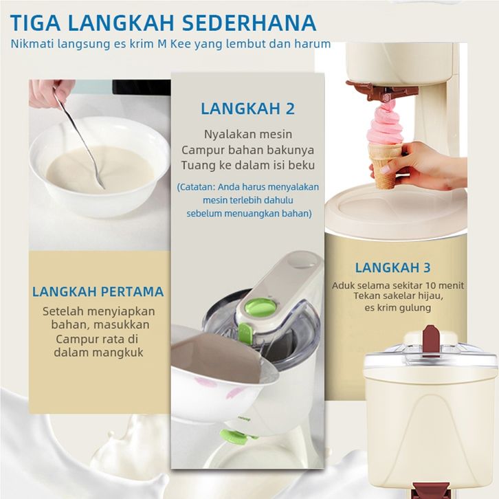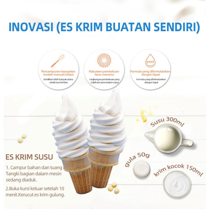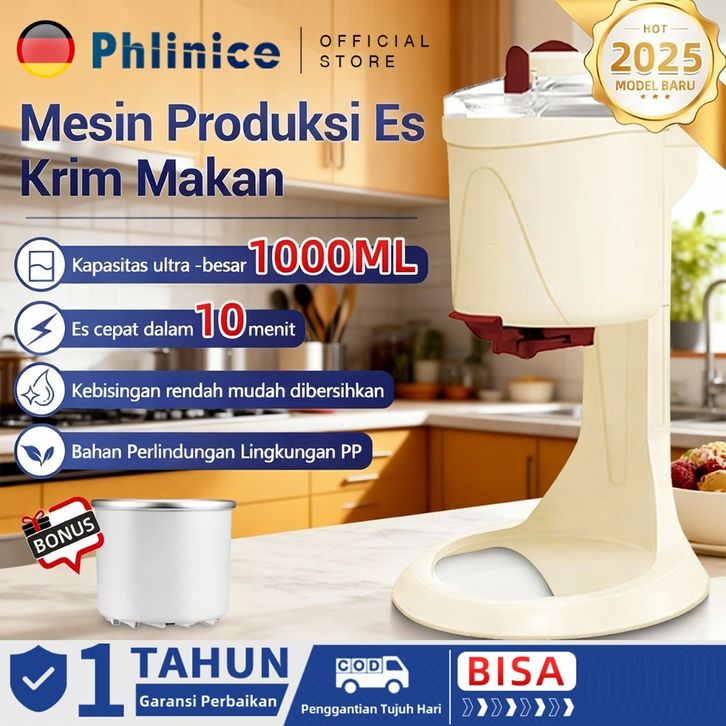 Phlinice Mesin Es Krim Kerucut Multifungsi | Mesin Es Krim DIY Otomatis untuk Rumah Tangga