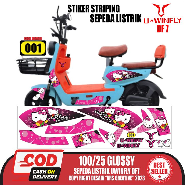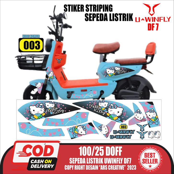 TERBARU Stiker Striping Sepeda Listrik Uwinfly DF7 Variasi QLA002 Hello Kity Doff/Glossy Semua Ready