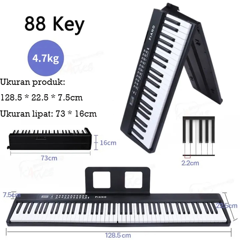 PLAYOU 88 Tuts Keyboard Piano Lipat Keyboard Piano Elektronik Digital Semi Berbobot Ukuran Penuh dengan Stiker Dudukan M